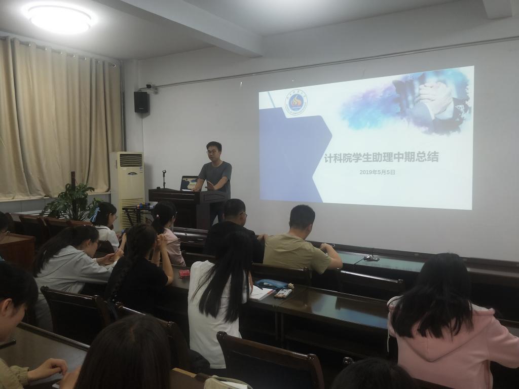 报告厅召开学工组助理中期总结交流会。会议由2017级本科生辅导员陈应权老师主持,全体学工组助理成员参加了本次会议。