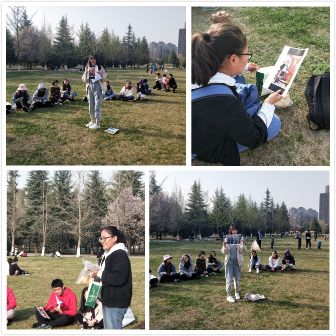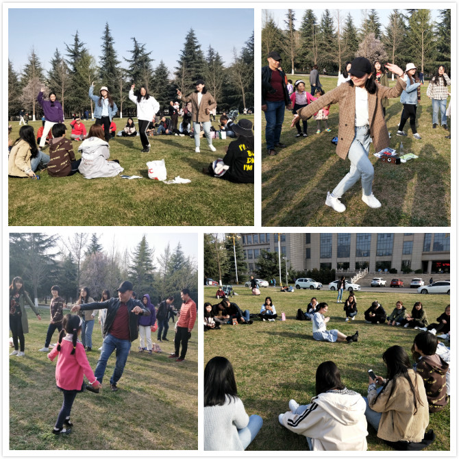 在团支书何胤莹的提议下,跟随着维吾尔族同学亚森江和努尔斯曼的舞步,全班同学围成圆圈,开心的跳起了维吾尔族的舞蹈。虽然同学们的姿势略显稚嫩,但是全班各族同学欢声笑语、纷纷起舞的画面不仅仅活跃了气氛,还使得一些在草坪上玩耍的小朋友们也不断加入我们,与我们一同唱歌跳舞。在此期间不断传来阵阵笑声,同学们的心仿佛在这样的活动中愈加靠拢了起来。当大家跳累后休息之时,少数民族同学们也分享了自己民族的一些趣事,例如藏历新年是在什么时候,自己的家乡有什么习俗和传说。藏族、维吾尔族和哈萨克族的同学们也教汉族同学们一些简单的民族语言,也为我们展示了“爸爸、妈妈我喜欢你们”这句话的三种语言文字,同学们立即学以致用,将这句话的三种版本通过微信的方式发送给爸爸妈妈们。