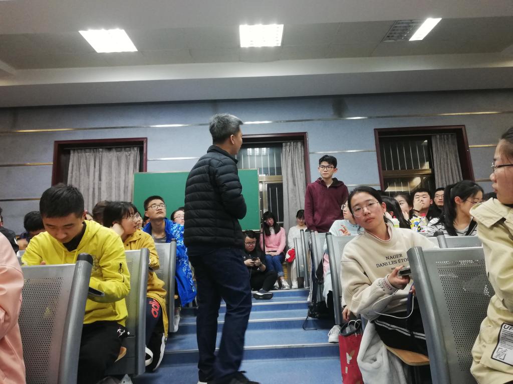 张老师简单介绍了当今大学生就业现状,以未来人生规划为切入点,借助往届学生的成长成才经历,告诉同学们在日常学习和生活中,应抓住机会,多去实践。