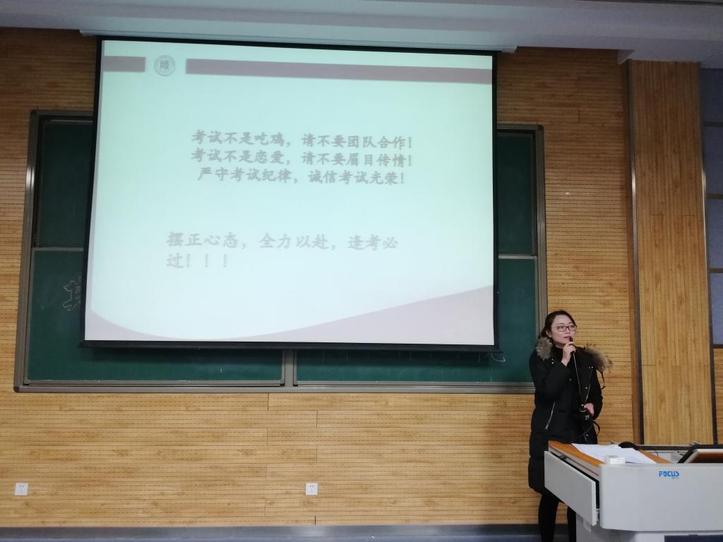 在教学五楼5201教室召开2018级学生期末考前动员大会。本次动员会由2018级辅导员安琪主持,JBO体育