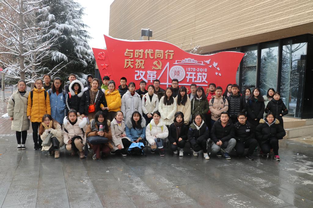 软工一班全体同学踏着年末的初雪来到教育博物馆参观“与时代同行——庆祝改革开放40周年陕西师范大学办学成果展”。在这感受历史,感受时代,感受我们党一直以来的伟大领导,感受我们师大这些年来的发展历程。