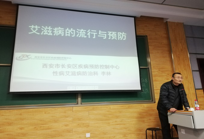 联合哲政院青协主办的防艾预艾知识讲座在教学五楼5201教室准时开讲,长安区疾病预防控制中心性病艾滋病防治科科长李林主讲,JBO体育
