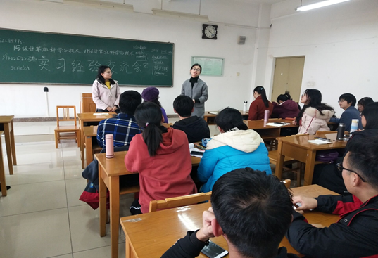 2015与2017级计算机科学与技术专业(免师)在长安校区文津楼1417举行了实习经验交流会。2015级计科专业5位实习生代表及2017级计科专业全体学生参加了本次交流会。2015级计科专业班主任苏玉萍老师,2017级计科专业班主任刘明老师、杨楷芳老师,以及2017级辅导员陈应权老师参加了会议。会议由2015级计科专业学生黄娅倩主持。