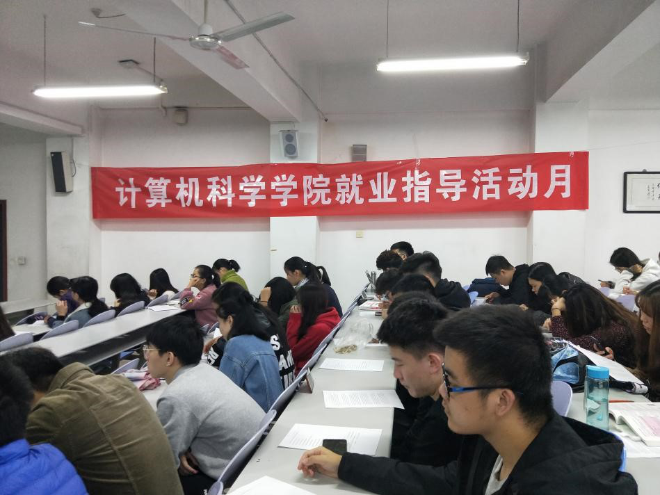 2016级、2017级有意向考研的同学听取了报告。报告由2016级辅导员郭康凌主持。