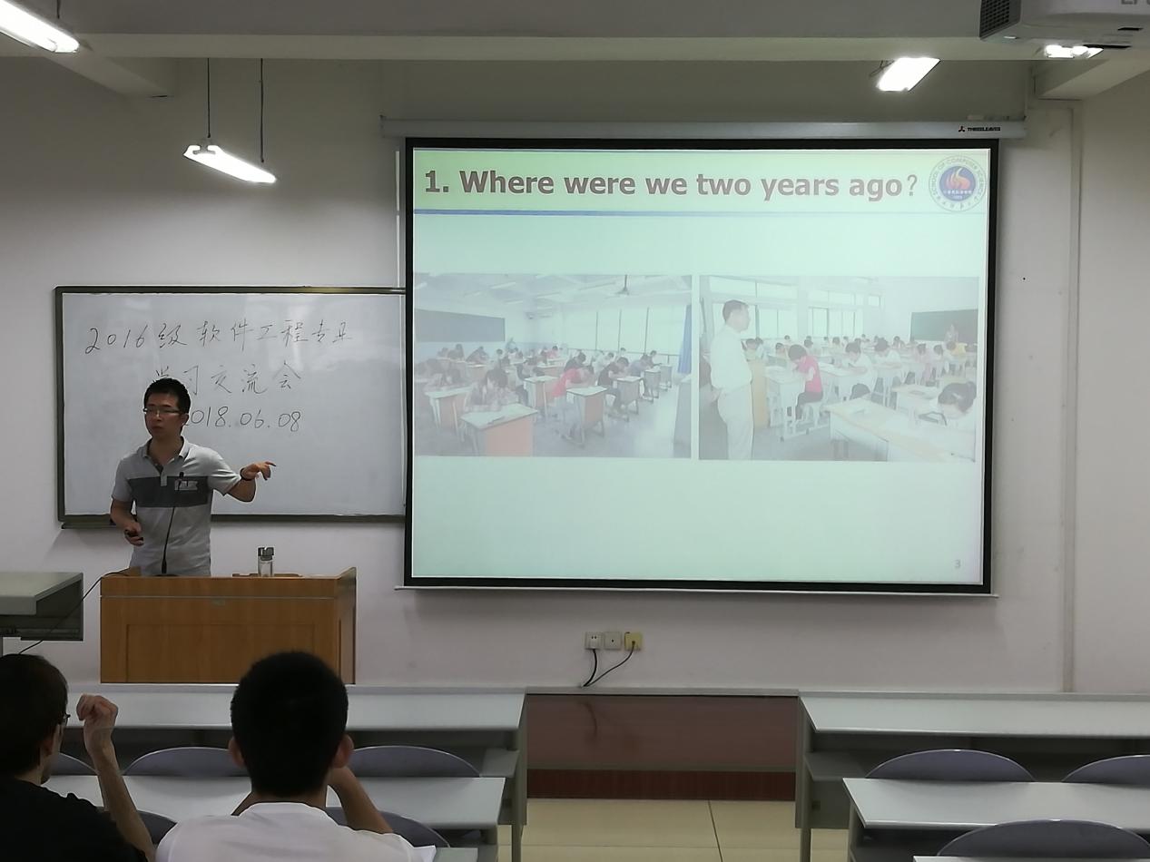 在此次交流会中,班主任王亮邀请辅导员毛庆给同学们讲话,鼓励同学们认真学习,认真完成每一份作业,劝诫同学们不要旷课,逃课。