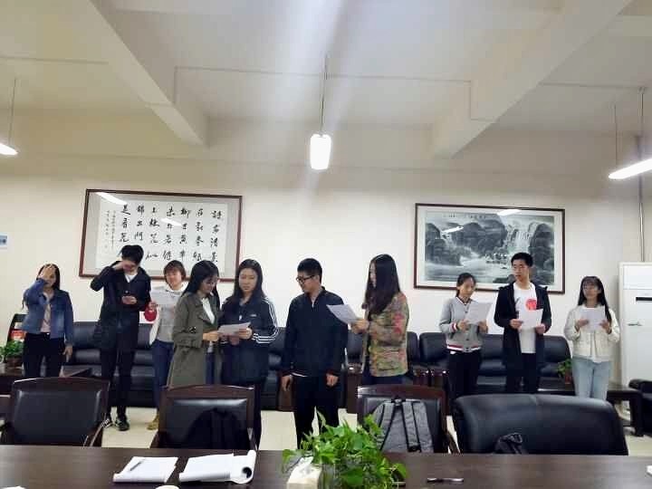 马列读书社九名社员于文津楼3427积极组织了诗朗诵排练,16级辅导员王靓颖老师参加了此次排练,并在排练期间进行指导提出改进意见。