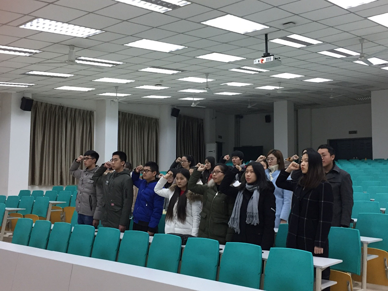 宣誓仪式由陈明哲同志领誓。“我志愿加入中国共产党,拥护党的纲领,遵守党的章程,履行党员义务,执行党的决定,严守党的纪律,保守党的秘密,对党忠诚,积极工作,为共产主义奋斗终身,随时准备为党和人民牺牲一切,永不叛党。”宣誓人对入党誓词的每个字都倾注着热血和激情。预备党员代表郭龙飞同志在发言中指出,回顾追求入党的历程,充实而富有意义,每一份申请的书写、每一次积极分子的学习、每一次参加党的活动,都无疑成为思想进步的源泉,这是神圣的时刻,是我们成长的新起点,意味着我们从此把自己的一切交给了党。不忘初心,方得始终,我们要牢记自己的誓言,以与时俱进的精神,奋发有为的状态,去开拓进取,为党和人民的事业奉献自己、燃烧自己,为中国梦的实现奉献青春与力量。预备党员同志均发表了自己的感言,他们表示在党组织和同志们的帮助下,成为了一名预备党员,确定了人生的坐标,将来我们会继续努力,谨记党的教诲,勇于实践,不断加强党性修养,从为党和人民的事业去奉献自己、燃烧自己,做一个高尚的人。