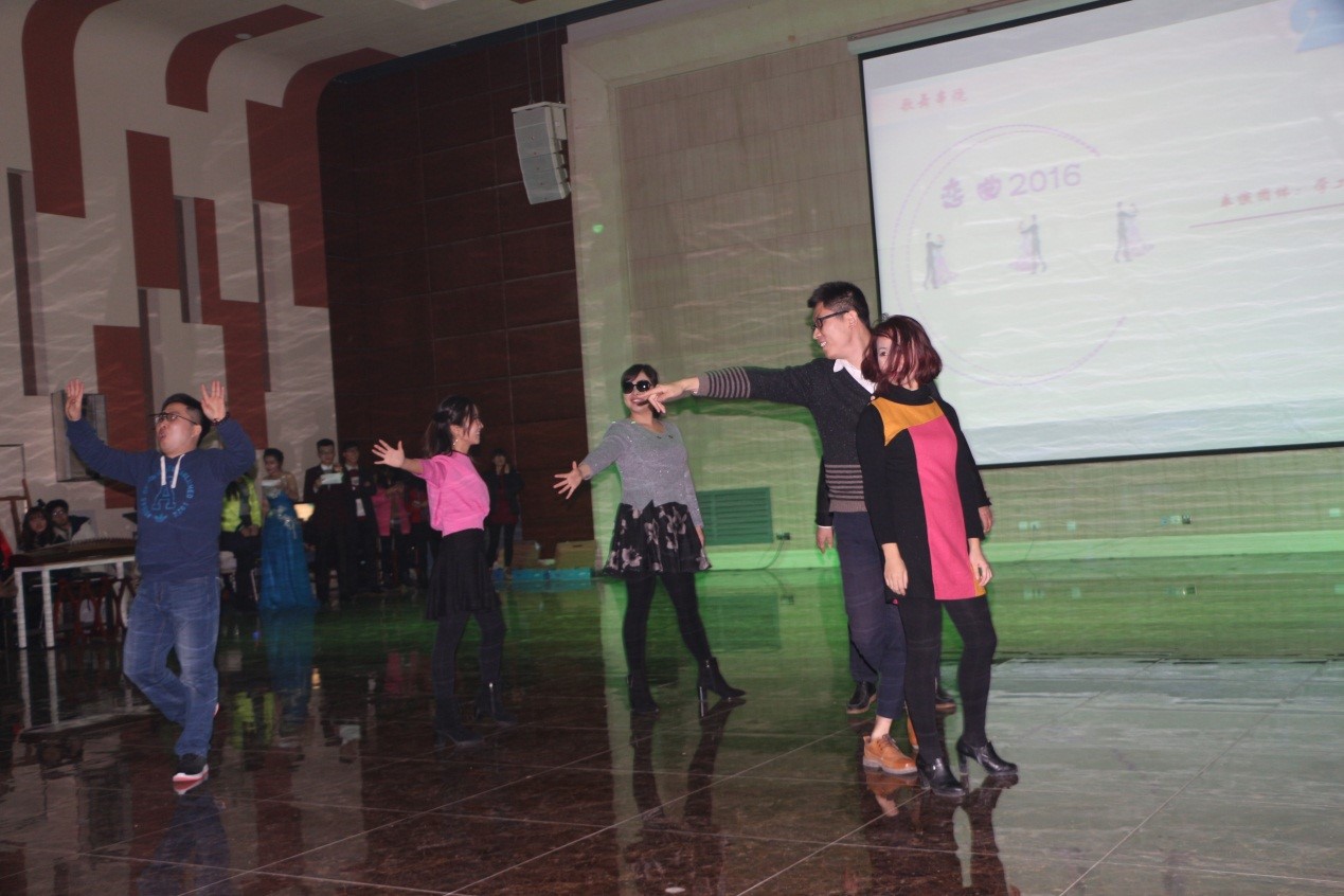 在2015年的工作进行了总结并表达了对2016年的希冀。伴随着华尔兹舞曲响起同学们纷纷邀请老师在舞池中央翩翩起舞,观众的热情与晚会现场的气氛逐渐升温;在紧张激烈的听音乐猜歌名游戏环节,同学们踊跃参与,现场气氛热烈到了极点;JBO体育
