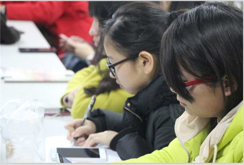 李盼宁结合自己在新东方兼职的工作经历与四六级阅卷经验,从分值划分入手,介绍了每部分对应的分值,对于在考前有限时间内应该着眼于哪些部分的加强训练给了同学们建议;她还介绍了每种题型的答题技巧、得分技巧、注意事项等。此外,她为同学们发放了测试资料,为同学们做了测试后,以之为例,详细讲解了做各类题型的方法。