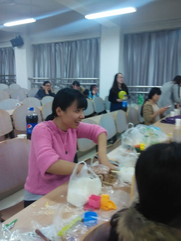 王玥同学首先宣布本次团日活动正式开始。各组首先派出代表抽签决定自己组的序号并报出队名和比赛口号,随后生活委员艾力同学为各组发放制作工具,活动便进入了紧张欢快的包寿司环节。与此同时,各队派代表按序号上台回答主持人设计的问题,并以答对题的多少把获得的分数记录在黑板上。