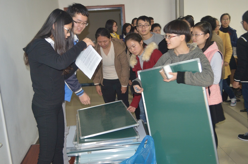 向同学们组织发放了小黑板、粉笔和白板笔等。