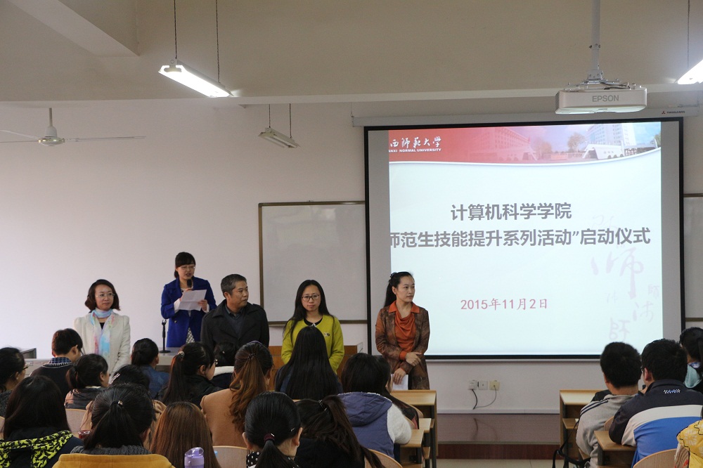 党委副书记袁冰、副院长马苗、团委书记胡雯洁、教学秘书朱炜、2012级辅导员张冲、2013级辅导员冯倩出席了启动仪式。2013级、2014级计算机科学与技术专业全体免费师范生参加了本次活动。启动仪式由2014级辅导员郭康凌主持。