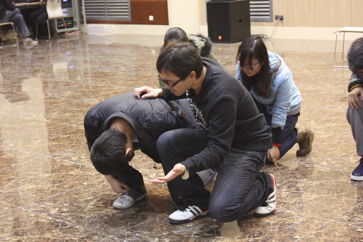 迎新晚会第二次节目审核在新勇活动中心二层举行。此次评审团由团委书记胡雯洁老师、2011级兼职辅导员李勇俊老师以及院学生会成员组成。