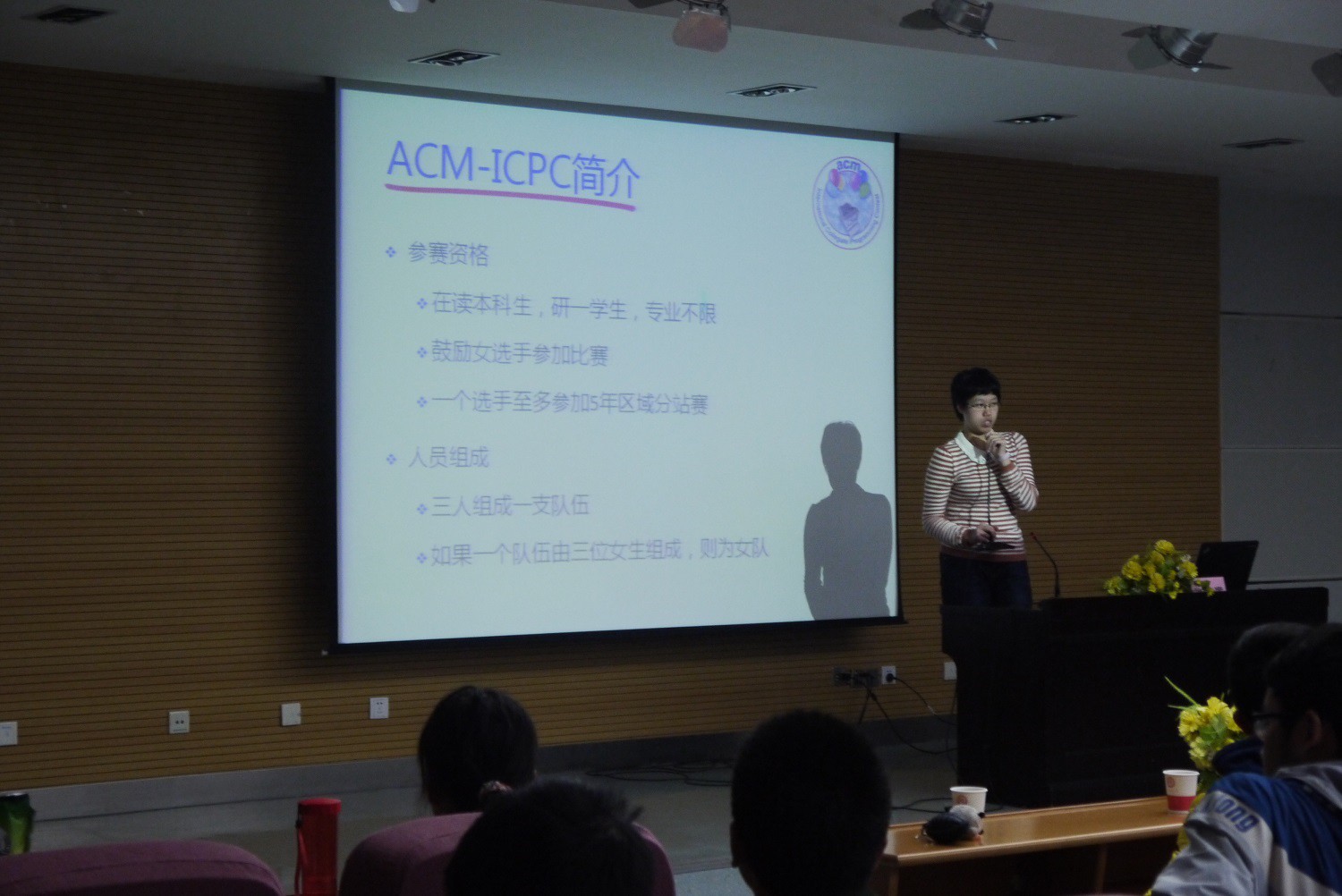 报告厅成功举行。经过两场宣讲会,同学们对ACM-ICPC竞赛产生了浓厚的兴趣,目前共有150余名学生报名参加,为我校今后ACM竞赛团队的选拔和组建打下了坚实的基础。