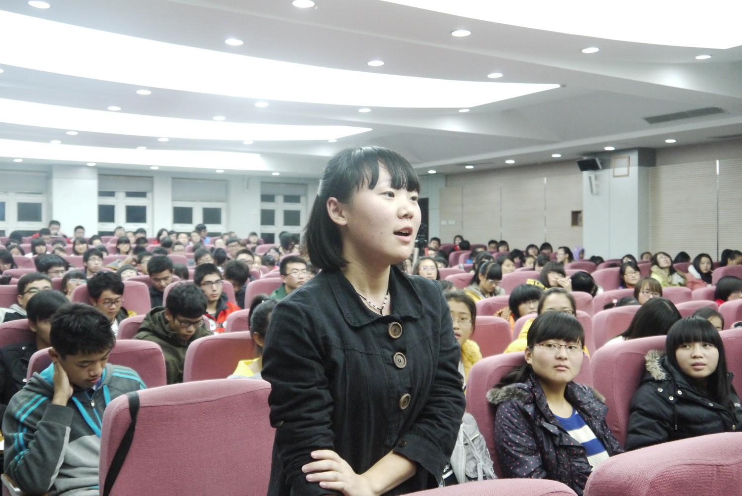 副院长吴振强教授、党委副书记袁冰老师、团委书记胡雯洁老师和理工科基础教学部辅导员杨涛老师出席了宣讲会。首先,我校ACM竞赛团队成员张瑞文向在座2013级同学介绍了ACM-ICPC(即国际大学生程序设计大赛)的竞赛规则、赛制、我校ACM队伍的发展等内容,向同学们展现了一个严谨、严格,却又趣味无穷的世界,使在场同学了解到,这个号称“头脑风暴”的国际性比赛,既考验队员们的编程能力、数理逻辑思维能力,也同样考验着队员们的英语阅读能力和团队精神。我校ACM集训队由王涛老师指导,今年首次参加国内各项比赛就取得了多项优异的成绩,博得了在场同学们的阵阵掌声。