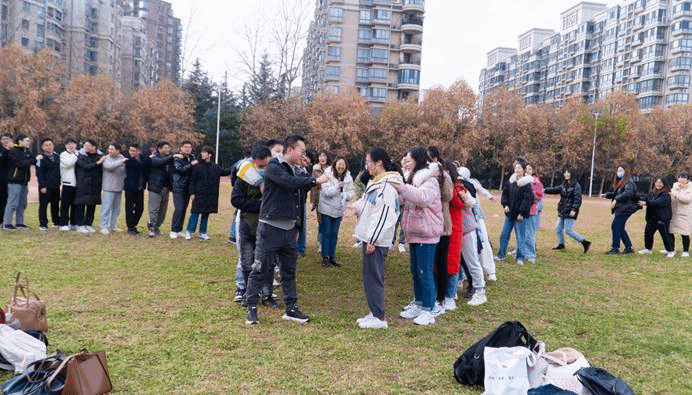 接着是“心有芊芊结”环节,本环节中同学们相互协作、积极商量游戏对策、相互鼓励加油。每位同学都深入体会到了团队协作与竞争的力量以及融入团体、为团体所需而努力的快乐与满足!