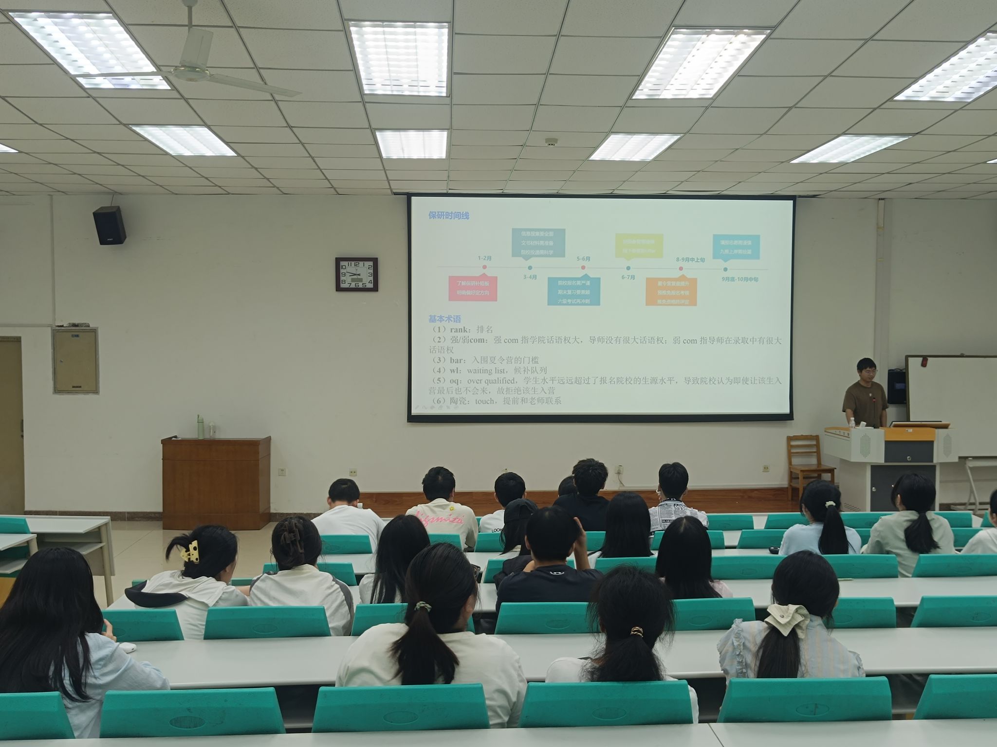 2025年6月15日晚,JBO体育 在文津楼4102教室组织2025届优秀学生保研经验分享交流。2025届保研学生代表、2026届部分毕业生参加,辅导员田海东主持。