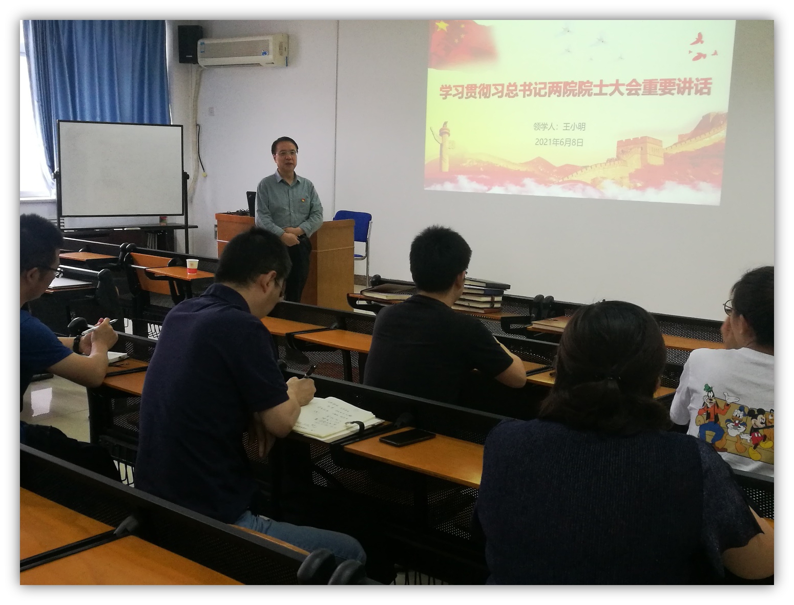 党委关于“学百年党史,立教育报国志,做接续奋斗者”党史学习教育实施方案的安排,2021年6月16日下午,王小明院长为普适计算党支部讲党课。
